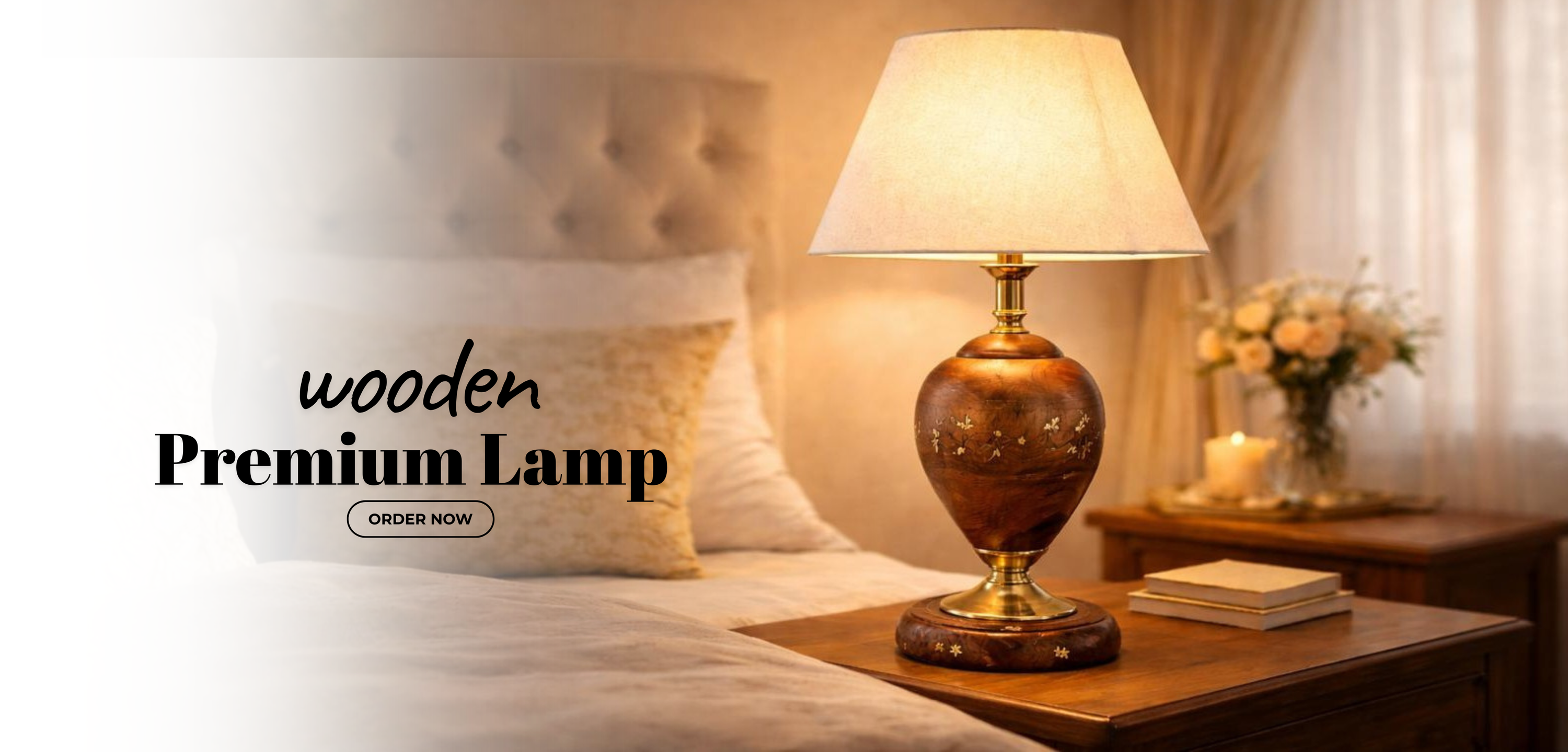 This exquisite table lamp features handcrafted wooden lacquer art with elegant Brass work, paired with high-quality golden imported fittings. The glossy polished finish and intricate detailing make it a stunning decor piece for homes, offices, or as a thoughtful gift. A perfect blend of artistry and functionality.